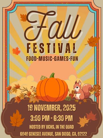Join us on November 19th in the UCHS Quad for a night of food, music, games and fun at the first annual Fall Festival!