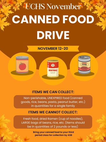 With the SNAP funding shortage, the UCHS ASB and the PTSA are creating a food drive to provide direct support for UCHS families. To donate directly with the PTSA, click HERE!